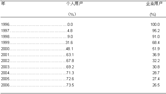 圖三: 美國DSL接入服務(wù)市場企業(yè)和個(gè)人用戶的發(fā)展趨勢